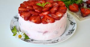 Творожный торт с клубникой на желатине – это очень вкусно! Чтобы десерт получился однородным и воздушным, обязательно протрите творог через сито или перебейте его блендером.