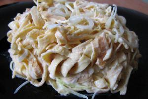 К тому же таким салатиком можно не только побаловать себя в будние дни, но и своих гостей, ведь очень достойно он будет выглядеть и на праздничном столе. Отварное куриное филе, яичные блинчики, репчатый лук и салатный лист в руках даже не очень опытного кулинара с помощью небольших рекомендаций смогут превратиться в оригинальный и легкий салат.