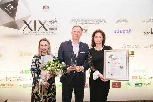 18 апреля 2019 г. состоялась церемония награждения победителей XIХ Всероссийского открытого конкурса профессионалов фармацевтической отрасли «Платиновая унция». Торжественное мероприятие по традиции собрало весь цвет фармацевтического рынка – более 300 руководителей высшего звена компаний, представителей науки и государственной власти.
