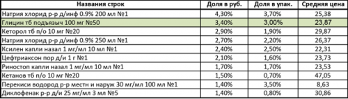 Помимо Глицина в тройку лидеров рынка вошли раствор натрия хлорида и Кеторол.