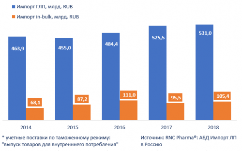 Общий объем ввезенных в нашу страну готовых лекарственных препаратов по итогам 2018 г. составил 531 млрд руб. (в ценах выпуска в свободное обращение), это всего на 1,1% больше, чем годом ранее, при проведении расчетов в рублях. Такую статистику приводят аналитики RNC Pharma.