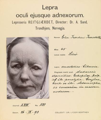 Лепра для норвежцев – память о походах викингов. Некогда римские легионы занесли эту болезнь из Египта в Британию, а оттуда задорные норманны на дракарах привезли её к себе домой. Там, где жили участники тех набегов, она и гнездилась. Центром и рассадником её стал Берген, где в старинной больнице святого Йёргена работал главный лепролог Норвегии Даниэль Данильсен. Он в 1847 году разоблачил проказу, известную как «великий имитатор» разных других болезней – от сифилиса до грибка. Даниэльсен показал, что это не «деградация тканей, вызванная тяжёлыми условиями жизни», а особая нозология, которая уверенно диагностируется на вскрытии. Даниэльсен выделил две формы болезни: более тяжёлую «узловатую» – с буграми, язвами и «львиным ликом», и менее грозную «анестетическую» – когда кожа идёт пятнами, а под ними со временем атрофируются нервы.