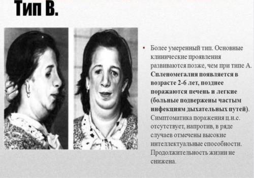 6. Заболевание Ниманна-Пика – характеризуется скоплением большого количества липидов в клетках нервной системы, что приводит к психическим отклонениям и расстройствам. Кроме того, болезни сопутствует увеличение печени в размерах и замедленное физическое развитие. Патология не совместима с жизнью, летальный исход наступает в первые 3 года жизни.